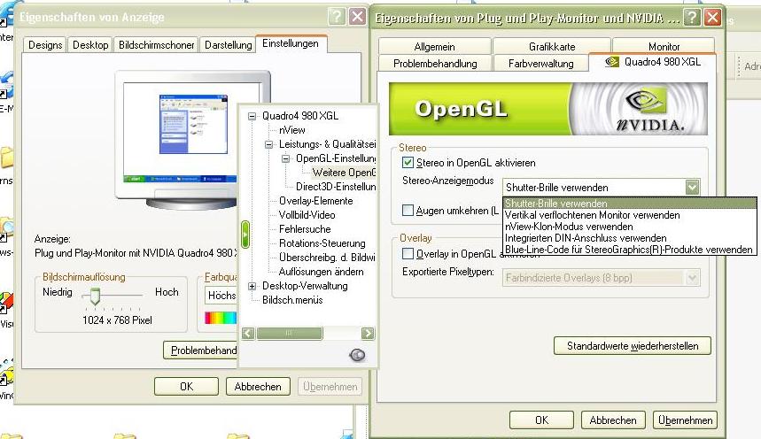 The SeeReal display can also be driven by using the Contact Open GL Hardware Stereo mode, and setting the "vertical interlaced monitor" stereo format in the Display Settings of the graphics Driver (e.g. Nvidia Quadro ).