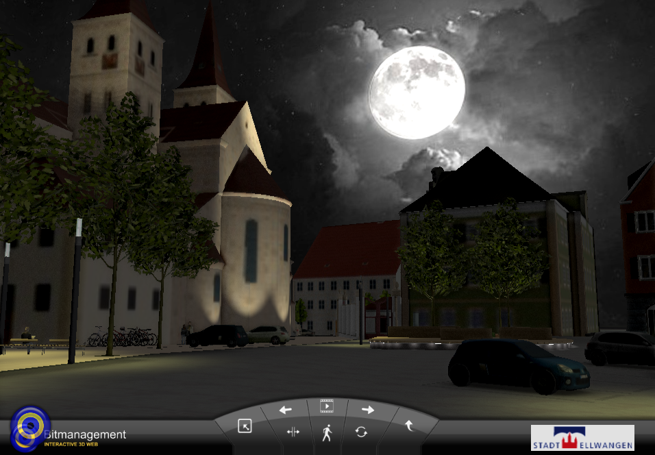 For a city model project as shown on the left side, based on a selected scene, here geometry instancing, mesh reduction and X3D binary has been applied as well as 250 dynamic lights have been placed quickly for online publishing - please test resultonline in planning scene 2 and 3: http:///en/ellwangen |